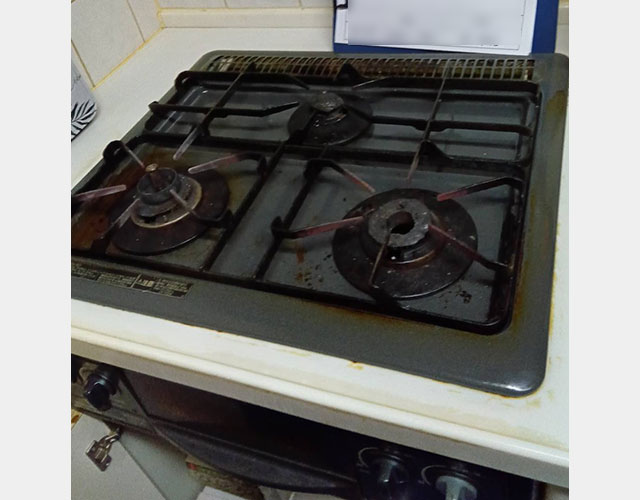 横浜市南区S邸ビルトインガスコンロ、リンナイRBG-30B5→リンナイ「メタルトップ」RB32AM5H2SA-BW交換施工事例