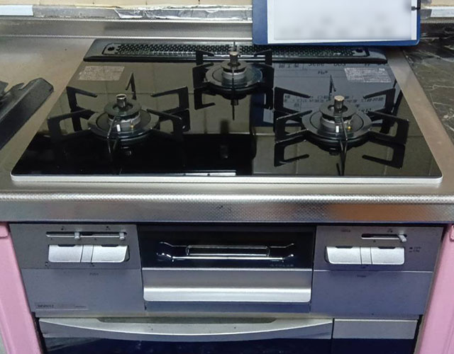 東京都東大和市S邸ビルトインガスコンロ、ハーマンC3WK3RJTL→ノーリツ「ミッケ」N3WV6RWAP1SIC交換施工事例