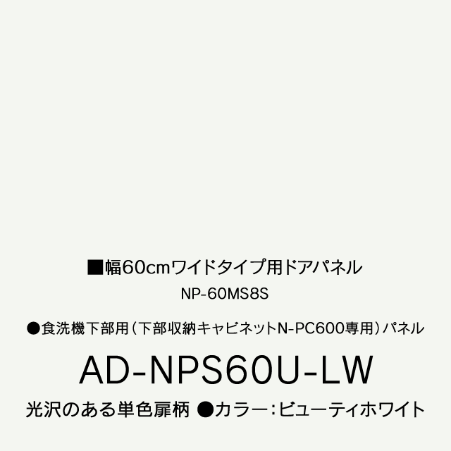 AD-NPS60U-LW|下部収納キャビネットN-PC600専用パネル ビューティホワイト|パナソニック食洗機別売オプション