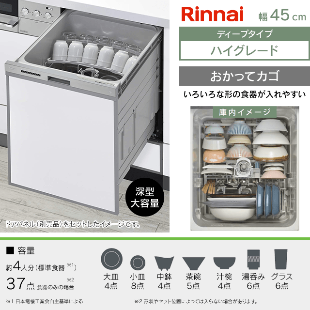 【工事費込み】RSW-SD401LPEA[おかってカゴ][ハイグレード][自立脚付きタイプ]|リンナイ 食洗機 ドアパネル型|幅45cm・ディープ(深型)タイプ・スライドオープン