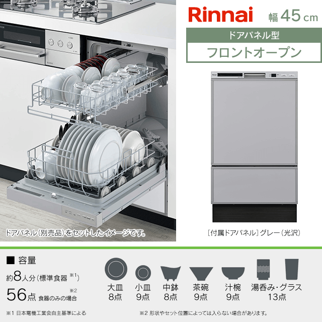 【工事費込み】RSW-F403C-SV[付属ドアパネル:グレー(光沢)]|リンナイ 食洗機 ドアパネル型|幅45cm・フロントオープン
