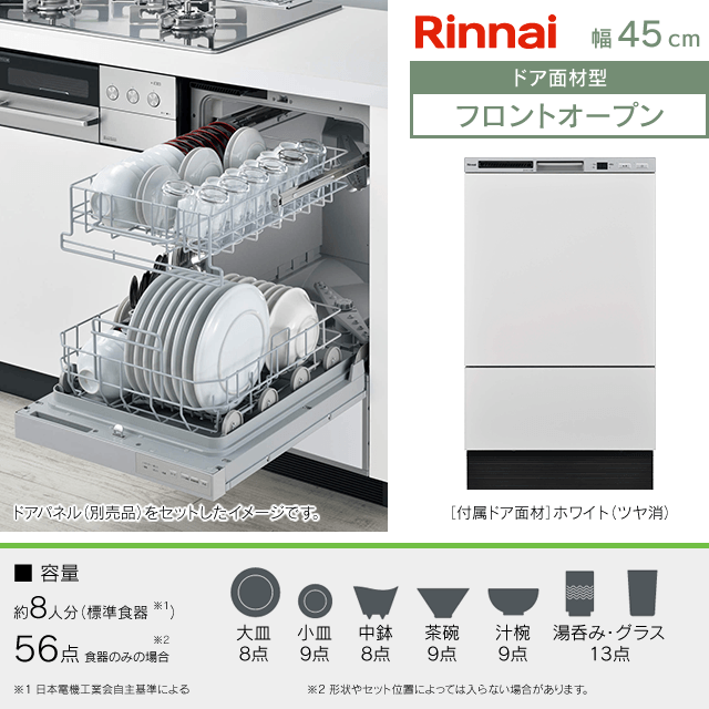 【工事費込み】RSW-F403CWM-SV[付属ドア面材:ホワイト(ツヤ消)]|リンナイ 食洗機 ドア面材型|幅45cm・フロントオープン