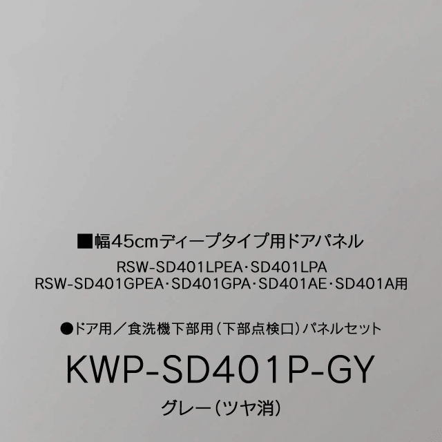 KWP-SD401P-GY|幅45cmディープ(深型)タイプ用ドアパネル グレー(ツヤ消)|リンナイ食洗機別売オプション