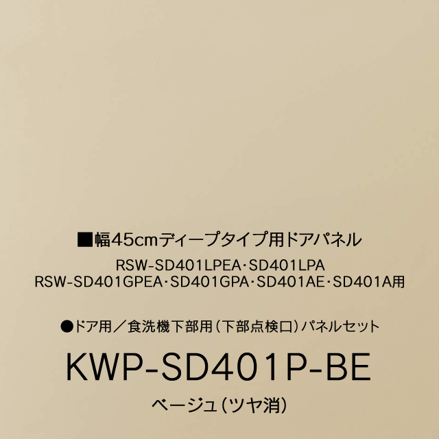 KWP-SD401P-BE|幅45cmディープ(深型)タイプ用ドアパネル ベージュ(ツヤ消)|リンナイ食洗機別売オプション