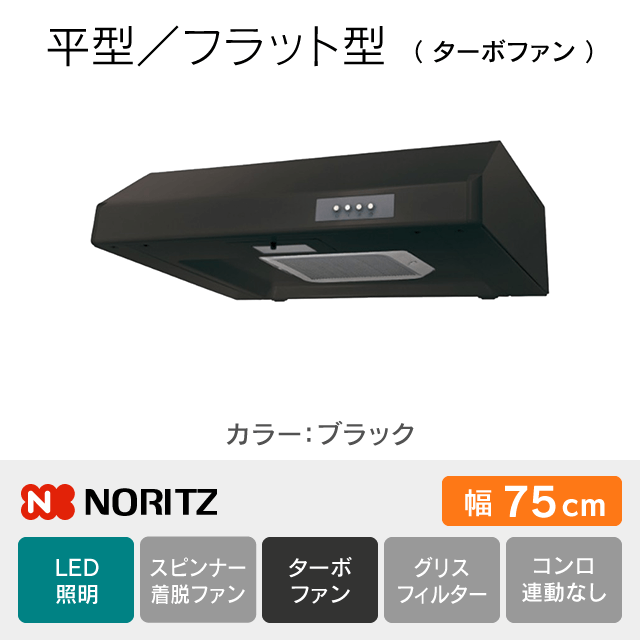 【工事費込み】NFG7F05TBA[幅75cm]レンジフード ノーリツ《平型/ターボファン》