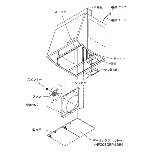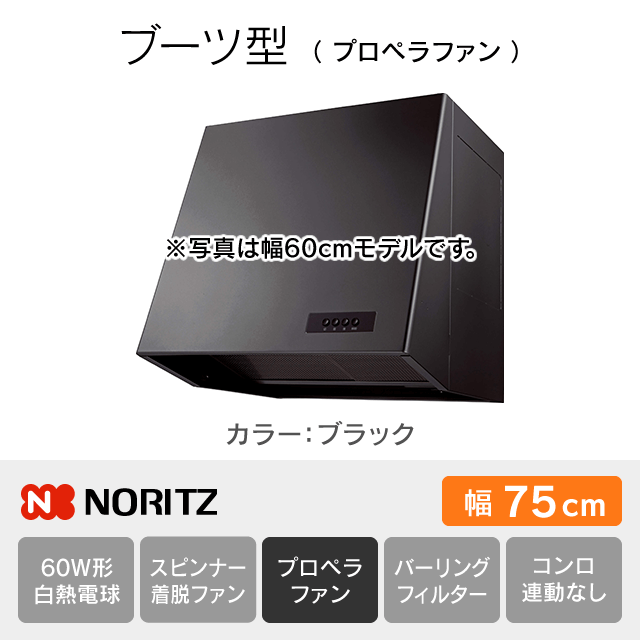 【工事費込み】レンジフード ノーリツ《ブーツ型/プロペラファン》[幅75cm]NFG7B05PBA