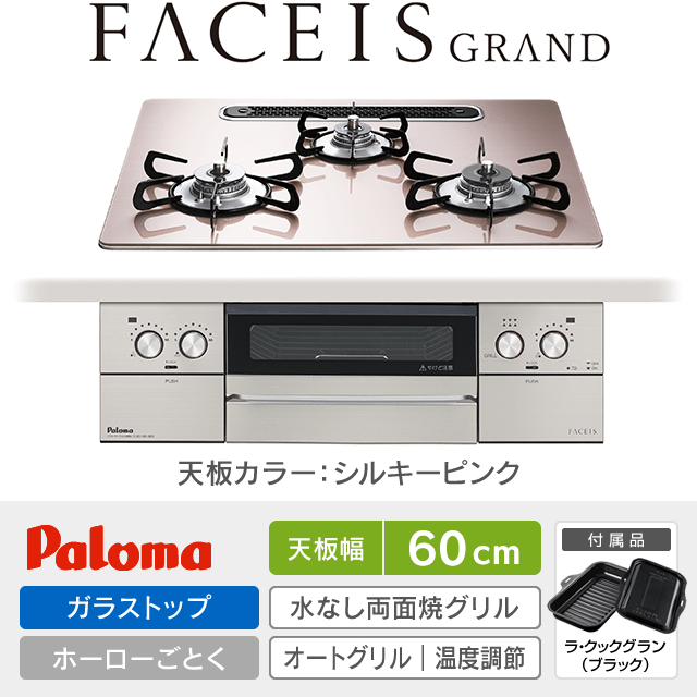 【工事費込み】パロマ ビルトインガスコンロ《フェイシスグランド/FACEISGRAND》[幅60cm]PD-893WS-U60GP
