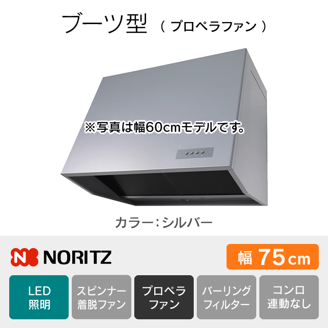 【工事費込み】NFG7B08PSI[幅75cm]レンジフード ノーリツ《ブーツ型/プロペラファン》