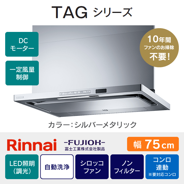 【工事費込み】レンジフード リンナイ・富士工業《TAGシリーズ》[幅75cm]TAG-REC-AP751SV
