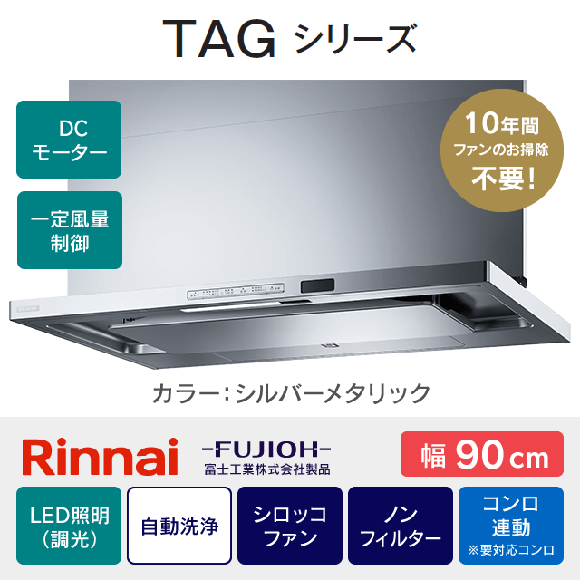【工事費込み】レンジフード リンナイ・富士工業《TAGシリーズ》[幅90cm]TAG-REC-AP901SV