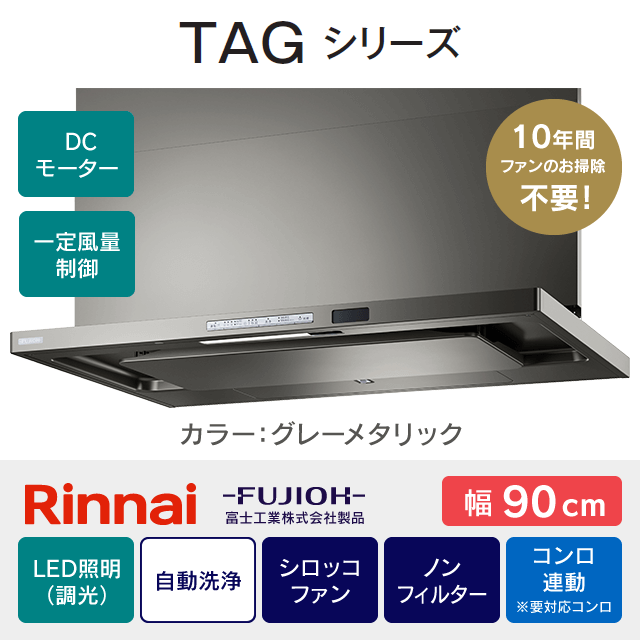 【工事費込み】レンジフード リンナイ・富士工業《TAGシリーズ》[幅90cm]TAG-REC-AP901GM