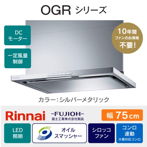 【工事費込み】レンジフード リンナイ・富士工業《OGRシリーズ》[幅75cm]OGR-REC-AP752R/LFW