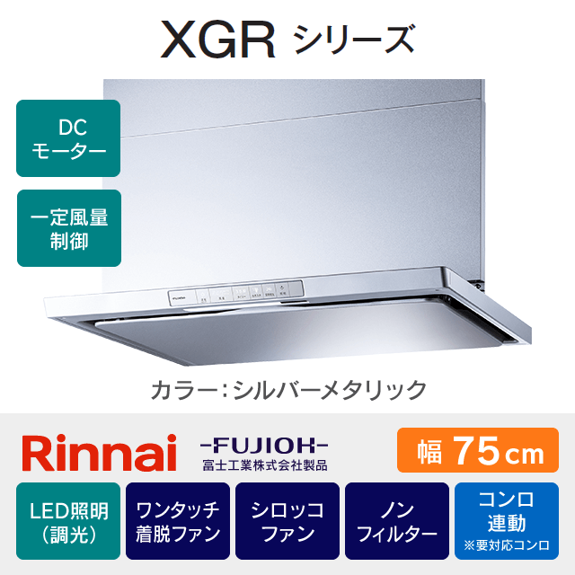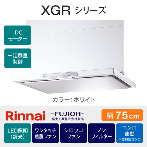 【工事費込み】レンジフード リンナイ・富士工業《XGRシリーズ》[幅75cm]XGR-REC-AP754SV