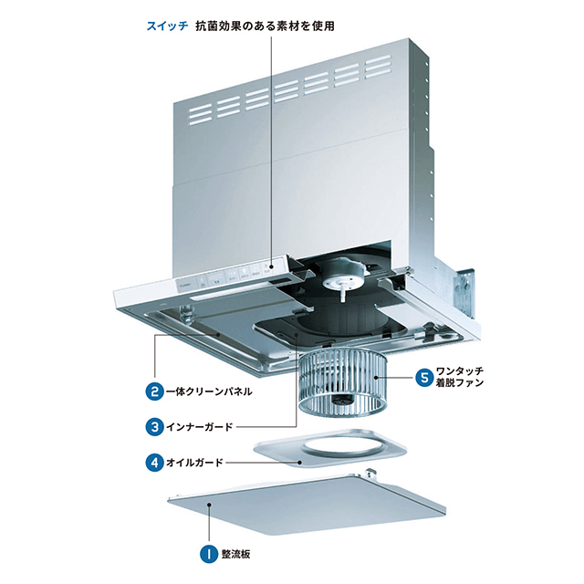 | スイッチ/タイマー | ソフトタッチ|常時換気|3段階タイマー|お手入れランプ|切れ忘れ防止タイマー |