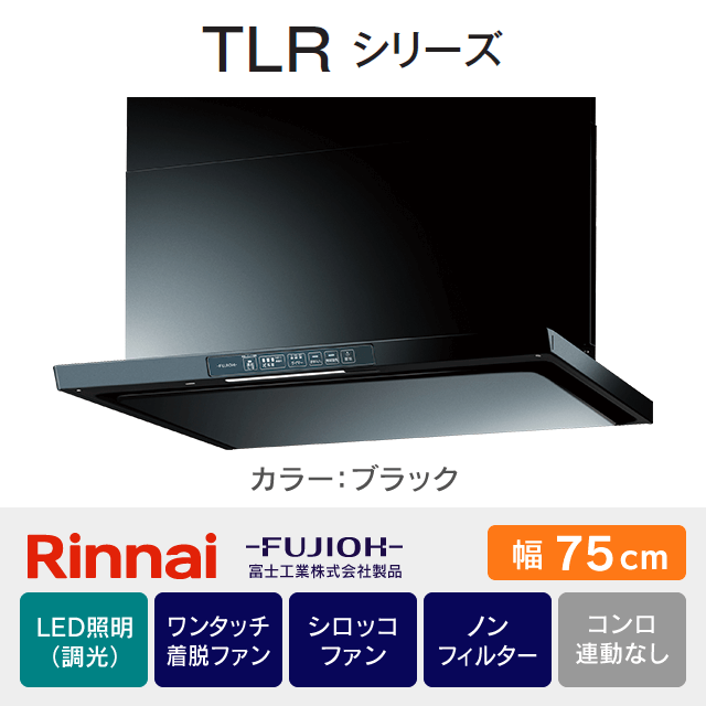 【工事費込み】レンジフード リンナイ・富士工業《TLRシリーズ》[幅75cm]TLR-3S-AP752BK