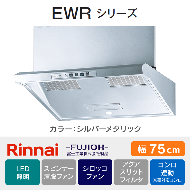 【工事費込み】レンジフード リンナイ・富士工業《EWRシリーズ》[幅75cm]EWR-3R-AP751SV