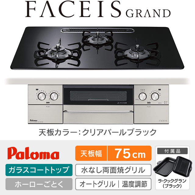 【工事費込み】パロマ ビルトインガスコンロ《フェイシスグランド/FACEISGRAND》[幅75cm]PD-893WS-U75CK