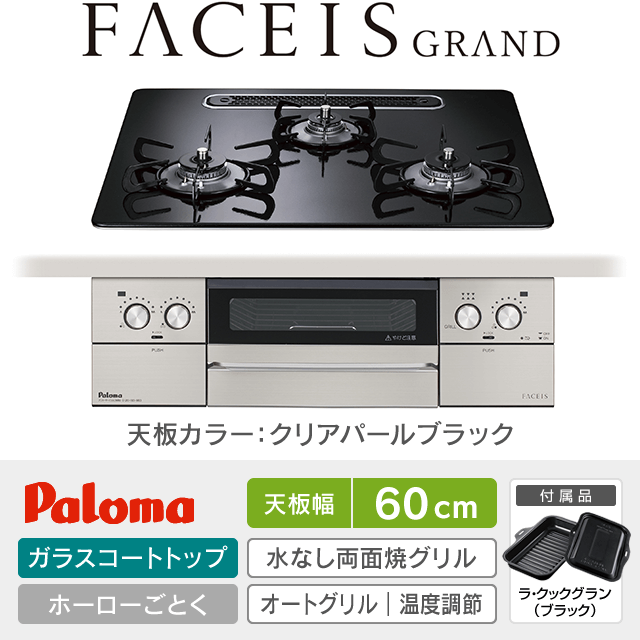 【工事費込み】パロマ ビルトインガスコンロ《フェイシスグランド/FACEISGRAND》[幅60cm]PD-893WS-U60CK
