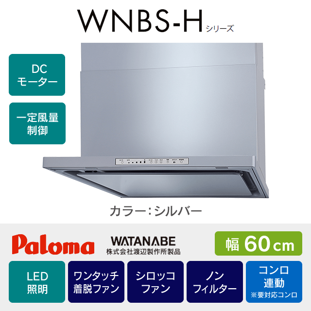 【工事費込み】レンジフード パロマ・渡辺製作所《WNBS-Hシリーズ》[幅60cm]WNBSK608HDXMSIL/R