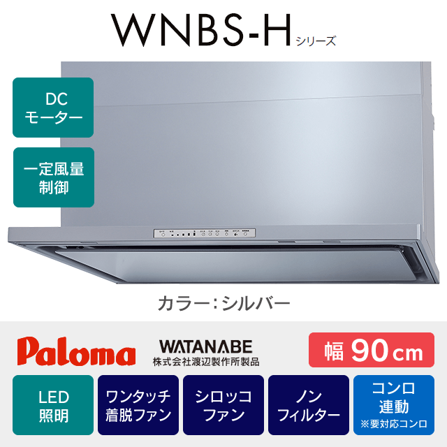 【工事費込み】レンジフード パロマ・渡辺製作所《WNBS-Hシリーズ》[幅90cm]WNBSK908HDXMSIL/R
