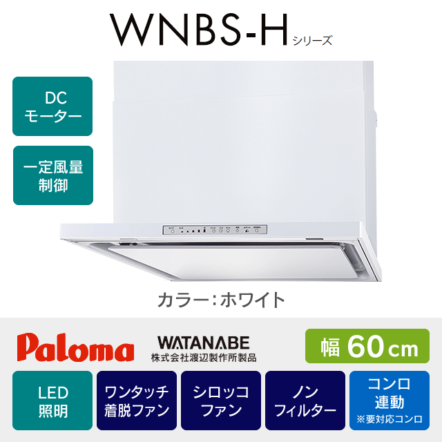 【工事費込み】レンジフード パロマ・渡辺製作所《WNBS-Hシリーズ》[幅60cm]WNBSK608HDXMWL/R
