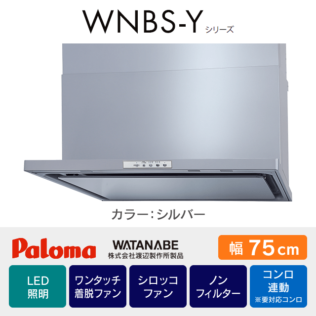 【工事費込み】レンジフード パロマ・渡辺製作所《WNBS-Yシリーズ》[幅75cm]WNBSK758YDXMSIL/R