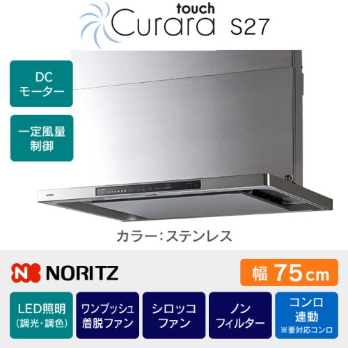 【工事費込み】レンジフード ノーリツ《クララタッチ/Curaratouch》[幅75cm]NFG7S27MSV