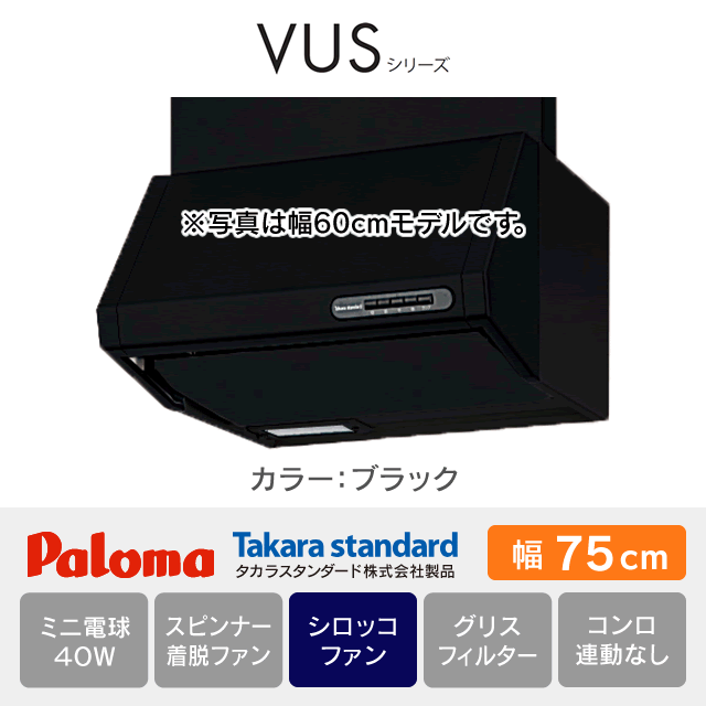 【工事費込み】レンジフード パロマ・タカラスタンダード《VUSシリーズ》[幅75cm]VUS-755AD(K)