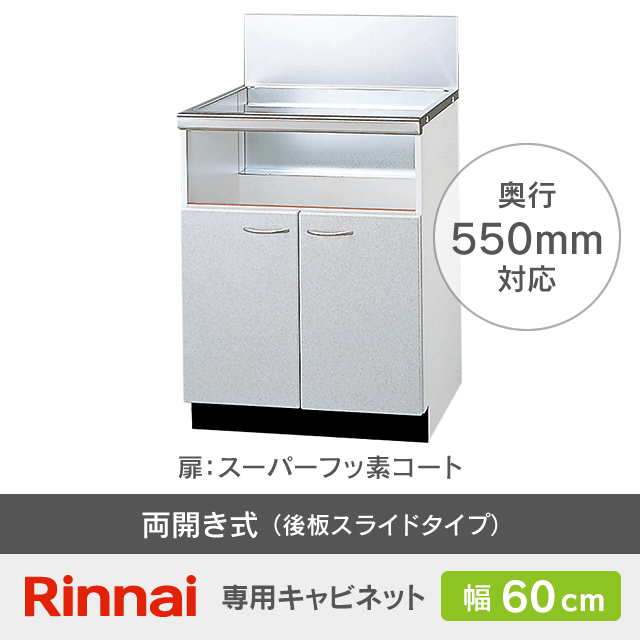 【工事費込み】リンナイ専用キャビネット両開き式・後板スライドタイプ[幅60cm/奥行550mm対応]UKC-602F1