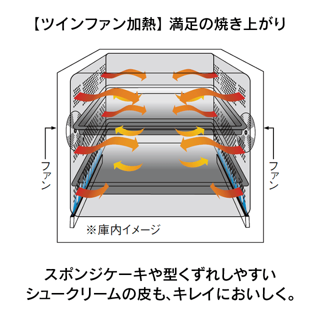 大きな食材も、たっぷり調理もOKの大容量44L。オーブン皿は上下2段構造で、同時調理もできます。