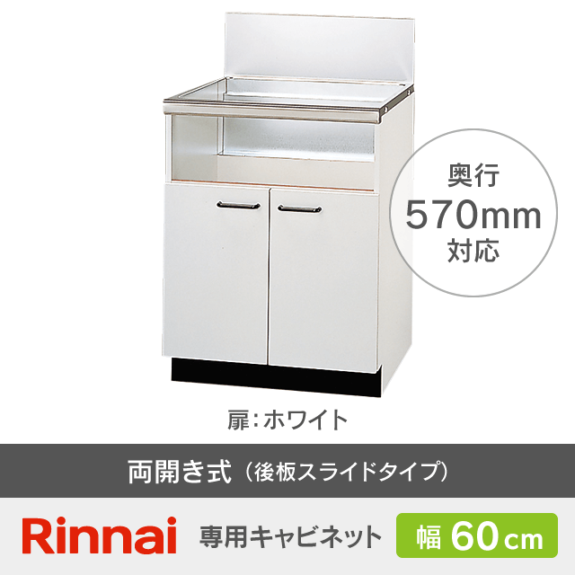 【工事費込み】リンナイ専用キャビネット両開き式・後板スライドタイプ[幅60cm/奥行570mm対応]UKC-657-W