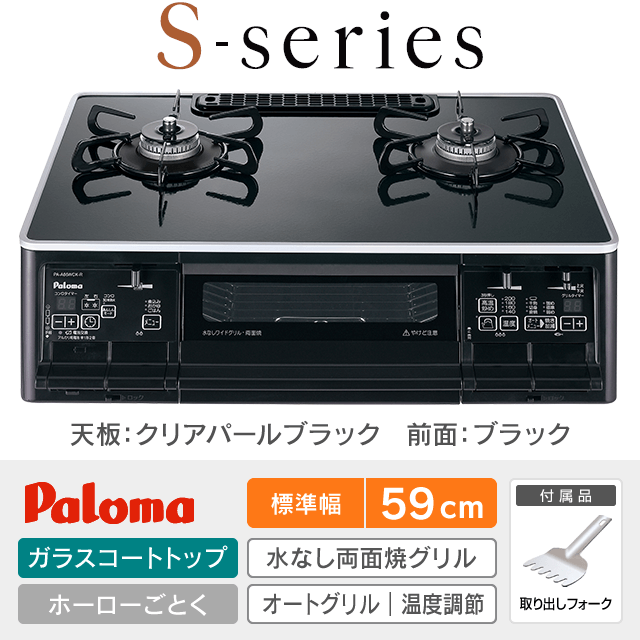 【工事費込み】パロマ テーブルガスコンロ《エスシリーズ/S-series》[幅59cm]PA-A66WCK-R/L