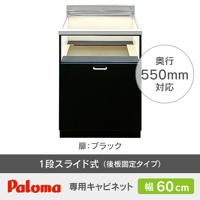 【工事費込み】パロマ専用キャビネット1段スライド式・後板固定タイプ[幅60cm/奥行550mm対応]PDC-610SB-1