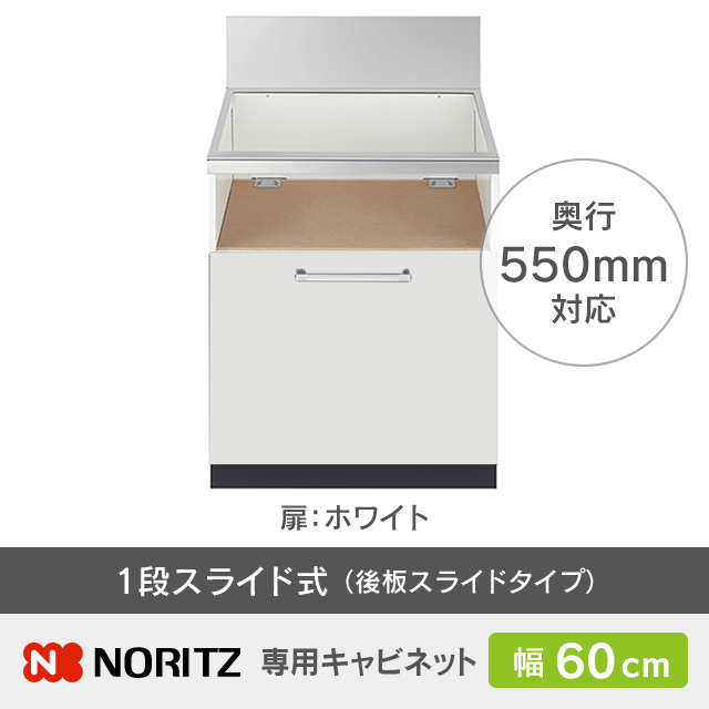 【工事費込み】ノーリツ専用キャビネット1段スライド式・後板スライドタイプ[幅60cm/奥行550mm対応]NLA6032W