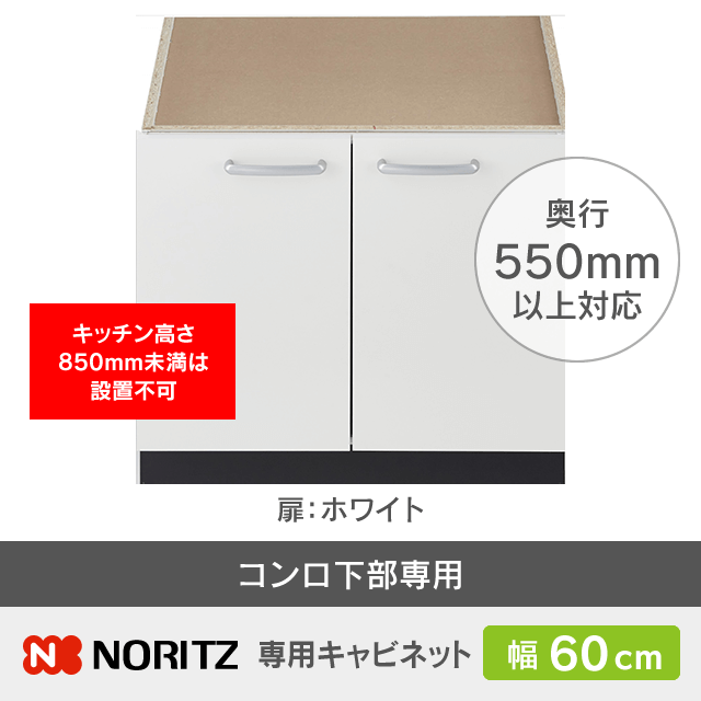 【工事費込み】ノーリツ コンロ下部専用キャビネット[幅60cm/奥行550mm以上対応]NLA6030W