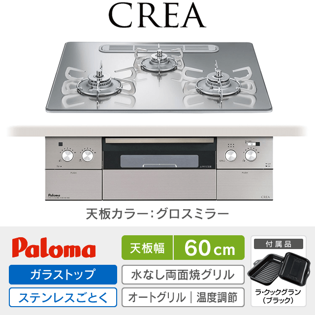 【工事費込み】パロマ ビルトインガスコンロ《クレア/CREA》[幅60cm]PD-963WT-U60GG