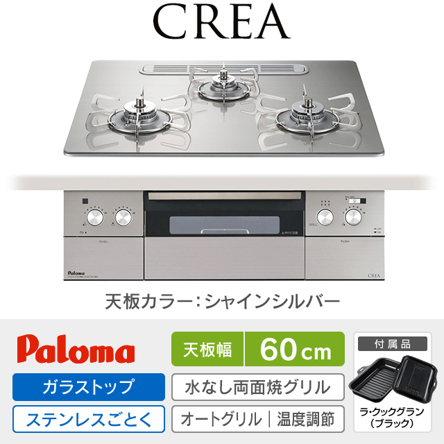 【工事費込み】パロマ ビルトインガスコンロ《クレア/CREA》[幅60cm]PD-963WT-U60GH