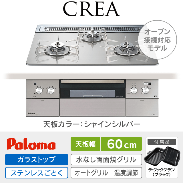 【工事費込み】パロマ ビルトインガスコンロ《クレア/CREA》[幅60cm]PD-963WT-60GH