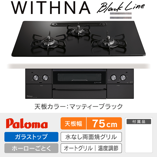 【工事費込み】パロマ ビルトインガスコンロ《ウィズナ/WITHNA》[幅75cm]PD-829W-U75GZ