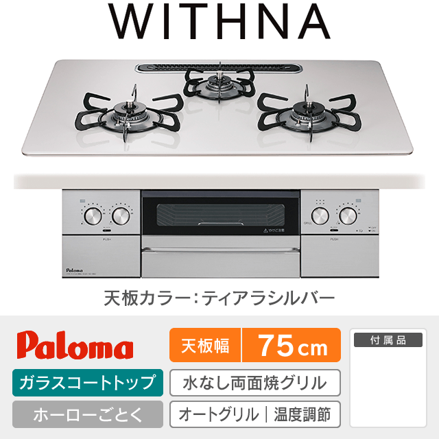 【工事費込み】パロマ ビルトインガスコンロ《ウィズナ/WITHNA》[幅75cm]PD-829WS-U75CV
