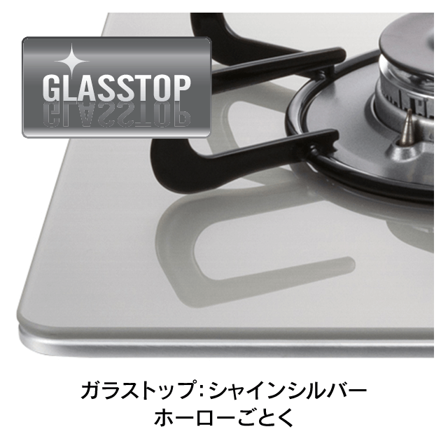 美しい光沢のガラストップは、ガラスを熱処理した結晶化ガラス を採用。熱、キズにも強いので美しさをずっとキープ。