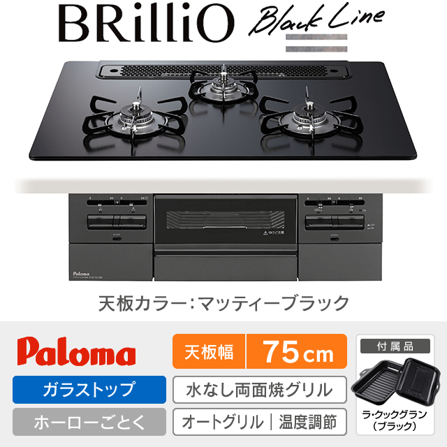 【工事費込み】パロマ ビルトインガスコンロ《ブリリオ/BRilliO》[幅75cm]PD-743W-75GZ