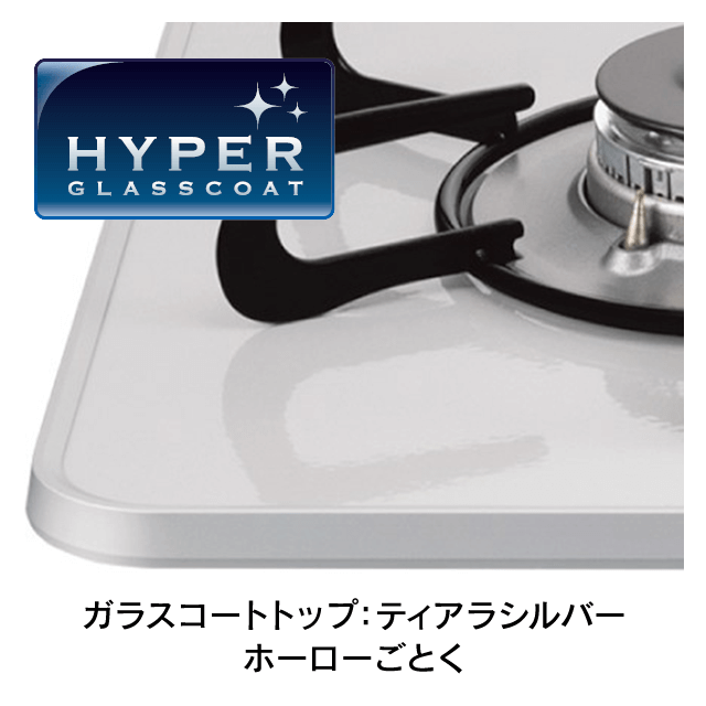 ホーロー用鋼板に2層のガラスコートをかけた艶やかな光沢。重い物を落としても割れにくく、ヒートカットトップでバーナーのまわりの焦げ付きを低減します。