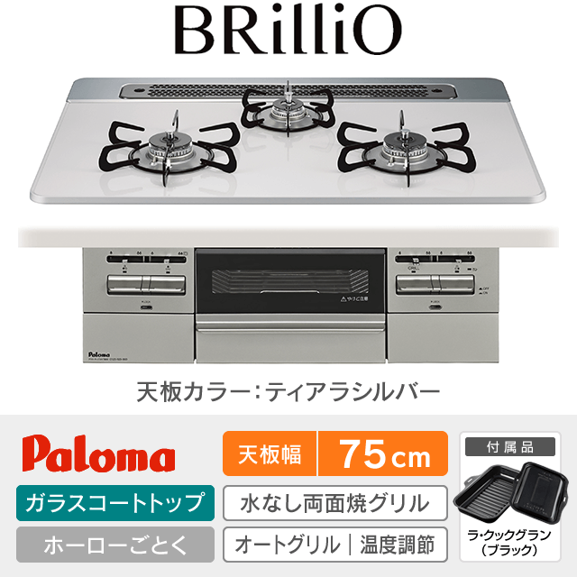 【工事費込み】パロマ ビルトインガスコンロ《ブリリオ/BRilliO》[幅75cm]PD-743WS-75CV