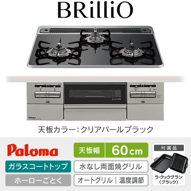 【工事費込み】パロマ ビルトインガスコンロ《ブリリオ/BRilliO》[幅60cm]PD-743WS-60CK