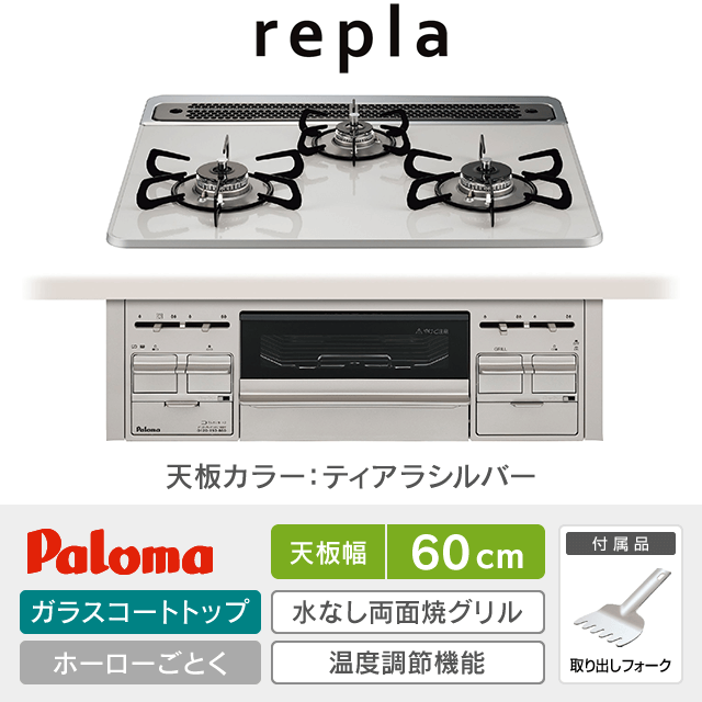 【工事費込み】パロマ ビルトインガスコンロ《リプラ/repla》[幅60cm]PD-509WS-60CV