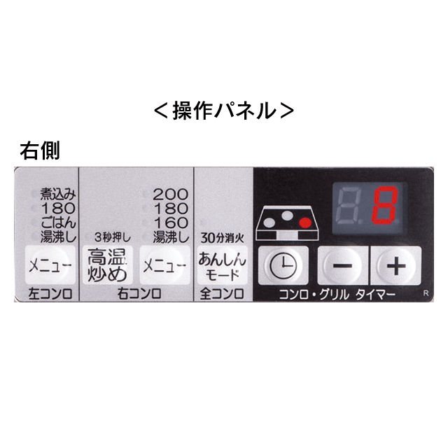 | 驚きクッキングテク | コンロ調理タイマー|温度キープ機能|煮込み機能|自動炊飯機能|湯沸し機能|高温炒め機能|グリル調理タイマー|遠赤外線グリル|ワイドグリル|水なし両面焼グリル |