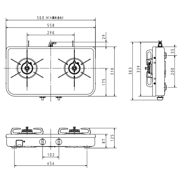 【工事費込み】パロマ テーブルガスコンロ《グリルレス/Grillless》[幅56cm]PA-29B