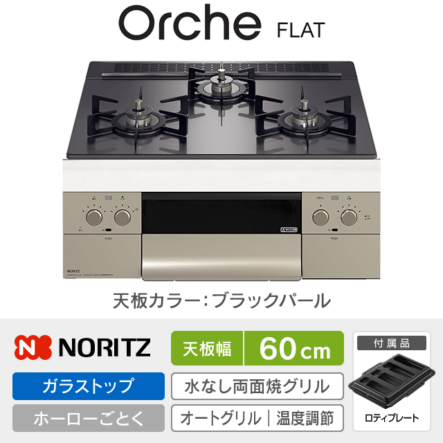 【工事費込み】ノーリツ ビルトインガスコンロ《オルシェ/Orche/FLAT》[幅60cm]N3WU3PWASQSTEC