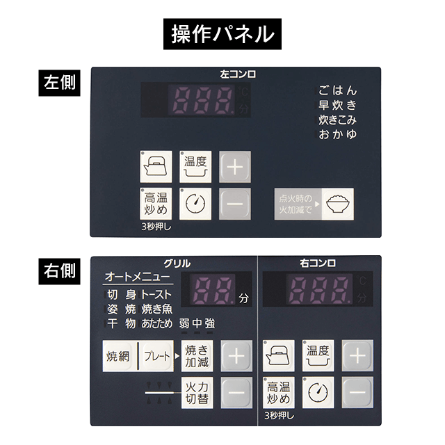 | 調理性能/コンロ | ダブル高火力&ダブルトロ火|炊飯機能※1|湯わかし機能|温調&タイマー併用 |